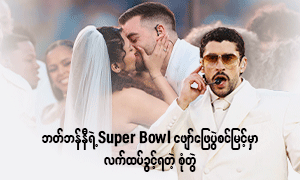 ဘတ်ဘန်နီရဲ့ Super Bowl ဖျော်ဖြေပွဲစင်မြင့်မှာ လက်ထပ်ခွင့်ရတဲ့ စုံတွဲ